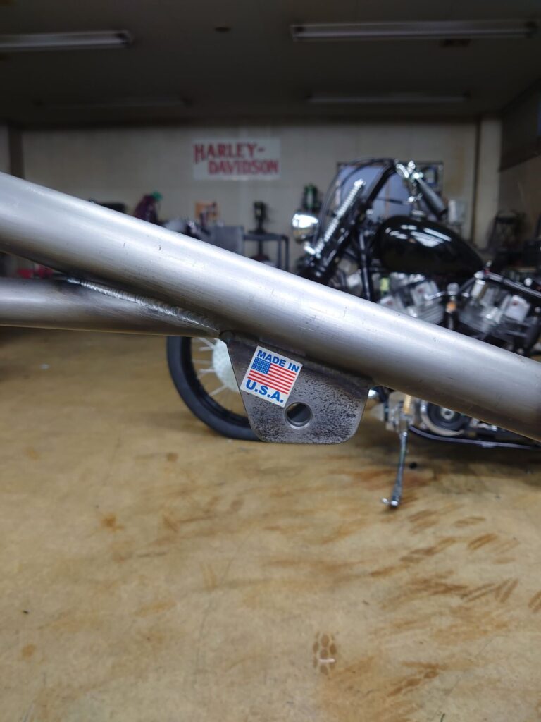 先日お客様よりお預かり致しましたアイテムを車体に取り付けてみましたのでご紹介です。 こちらはオイルフィルターのカバー兼マウントKITです。ビーハイブ型カバーの中身はカートリッジ式の通常のフィルターを使用します。 あらゆる方向からフィンが見えるデザインで特徴の強いアイテムです。隠すように取り付けるのではなく見せるように取り付けます。 フレームに取り付けるためのステーを溶接加工して確実に固定します。結構重たいのでシッカリと付けたいです。 プライマリーのすぐ後にマウントしましたが遠くから見ても違和感はありません。高価な部品ではありますがとてもカッコいいです! こちらは昨年に輸入したシャシでフロリダのパートナーが組立た1台です。今はいろいろ確認中ですが、後ほど塗装して完成させます。 フレームは全体が1インチとなっていて細くシンプルに見えます。イイ意味でキャシャなデザインであり細身のチョッパーに良しです。 彼が手掛ける製品すべてにこのステッカーは貼られていますが、日本人としてはこのUSAブランドは大きな存在になると思います。 当店でよく使っていたクラフトテック社はフレーム製造を止めてしまったので、当店のスタンダードが変わることになりそうです。。。 BLOG この記事が気に入ったら いいね または フォローしてね! Follow @ENDOAUTOSERVICE Follow Me よかったらシェアしてね [AGFORNIA VOL.5]に出展してきましたー♪ コヨーテミーティングに伴う店舗営業お休みのご案内 関連記事 明日は「キシチューブミーティング」に参加してきます♪ 2025年12月13日 真鍮製のプッシュロッドカバー製作いたしました♪ 2025年12月12日 スプロケット付近のオイル漏れ対策に“チェーンカバー”が効く! 2025年12月11日 シンプルな鍵をカスタムしてレベルアップ♪ 2025年12月10日 エンジン全バラバラ点検で完全リフレッシュ♪ 2025年12月10日 「ホットロッドカスタムショー2025」はヤッパリ楽しい~♪ 2025年12月8日 「ホットロッドカスタムショー2025」前日準備~♪ 2025年12月7日 店内ショールームをちょっと撮ってみました♪ 2025年12月5日