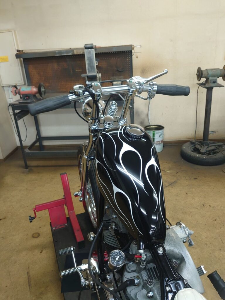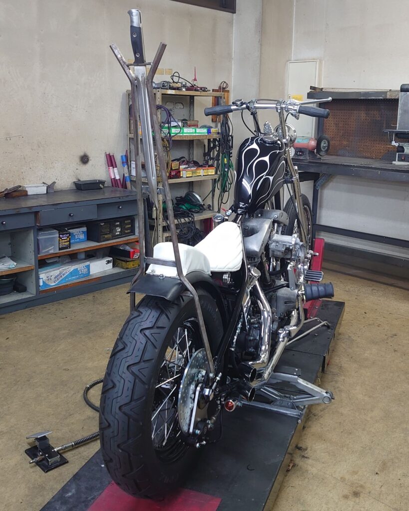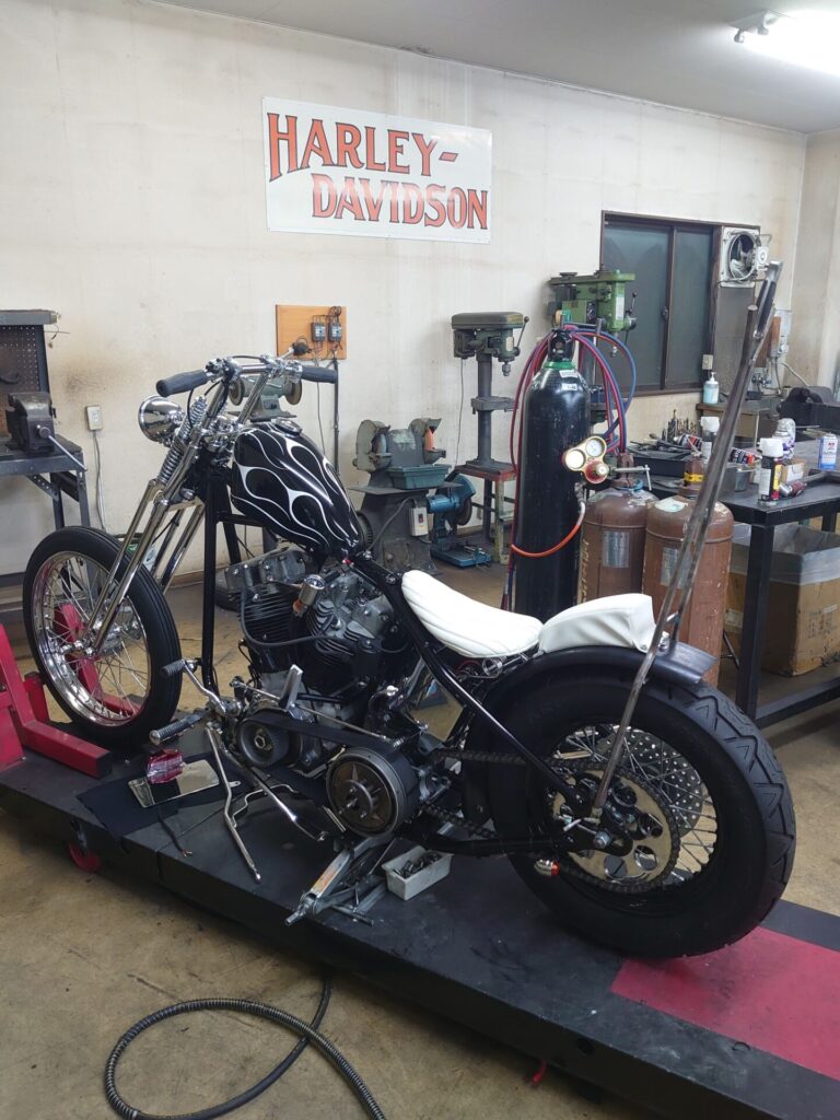 ところで、店に戻りましたら二階工場内ではシーシーバーの取付改造をおこなっている最中でしたのでご紹介致します!