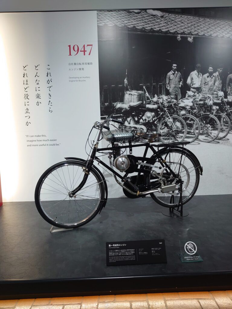 館内は1階・2階・3階とフロアが分かれており、1階には自転車にエンジンを積んだような本当に初期のオートバイから展示がスタート。