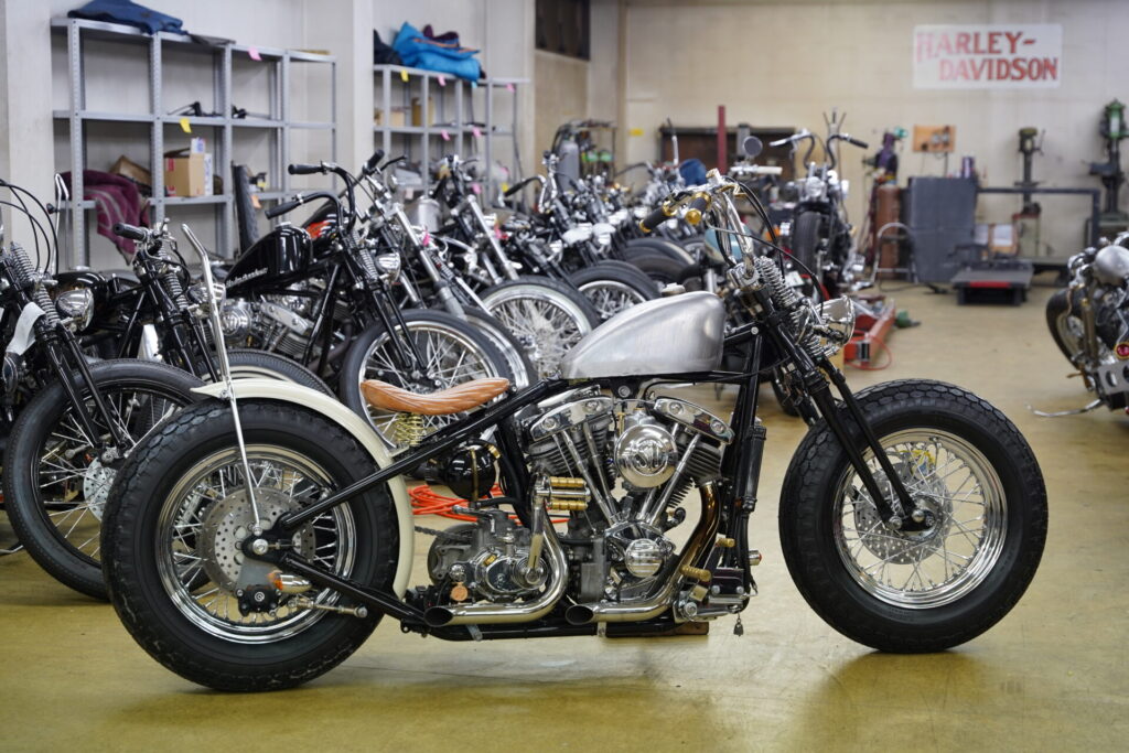 古くから存在する歴史あるスタイルで、独特なルックスが好きな方にはたまらないカスタムパーツです。当店でもスプリンガーフォークをご希望される方が多いのですが、ネック角度がしっかり寝ているチョッパーには、スプリンガーよりもガーターの方が構造上相性が良いケース があります。あまり主張しすぎないメカニカルさも魅力ですよね。