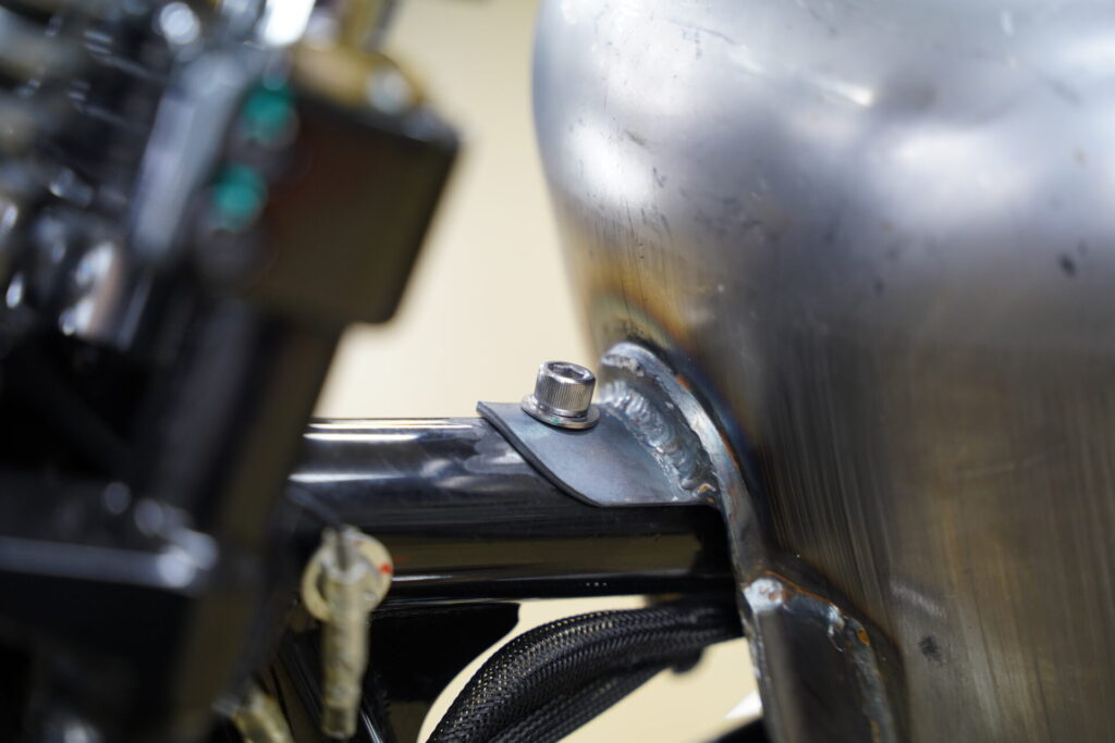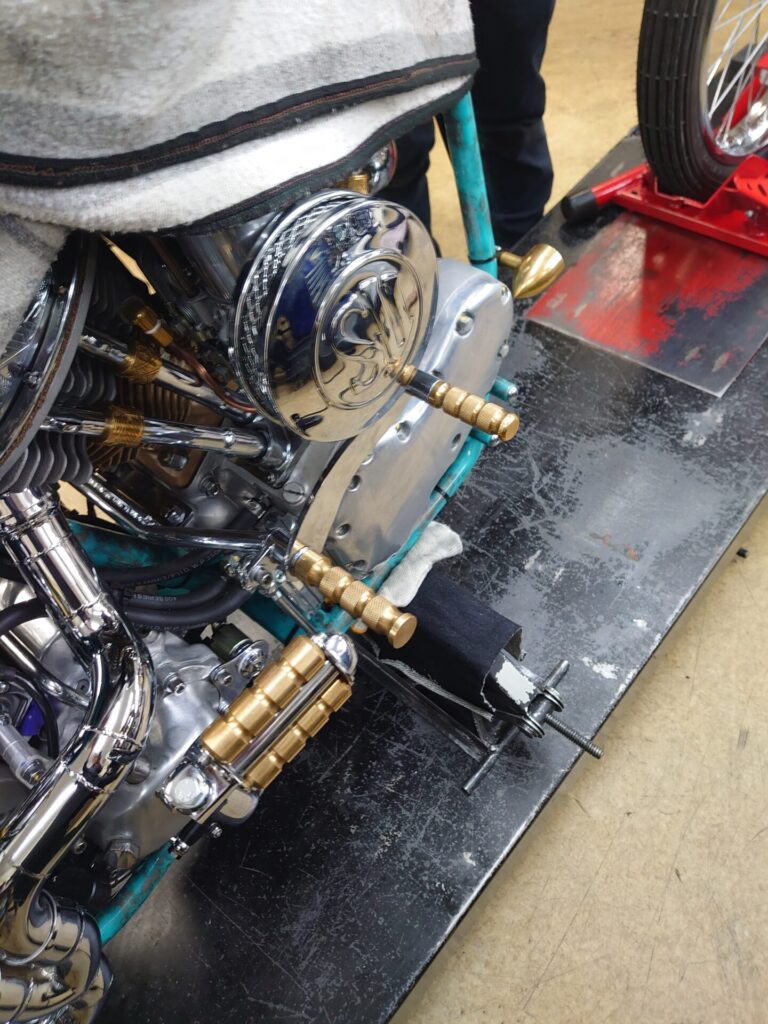 ガソリンタンク交換中のSHOVEL様がちょうど今いらっしゃいまして、マウントまで完成しましたのでご紹介です。