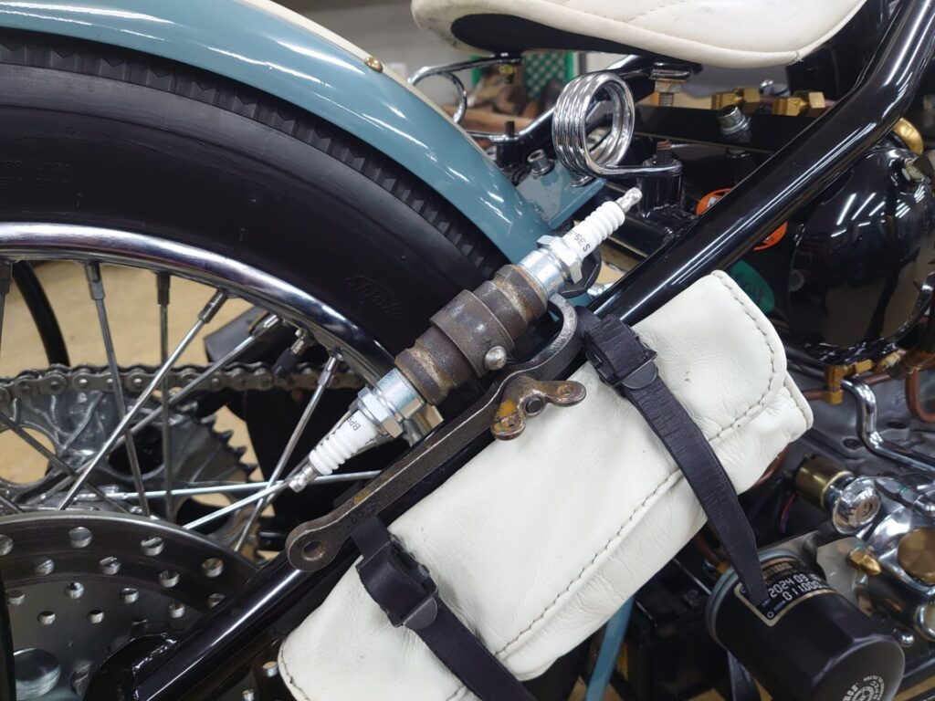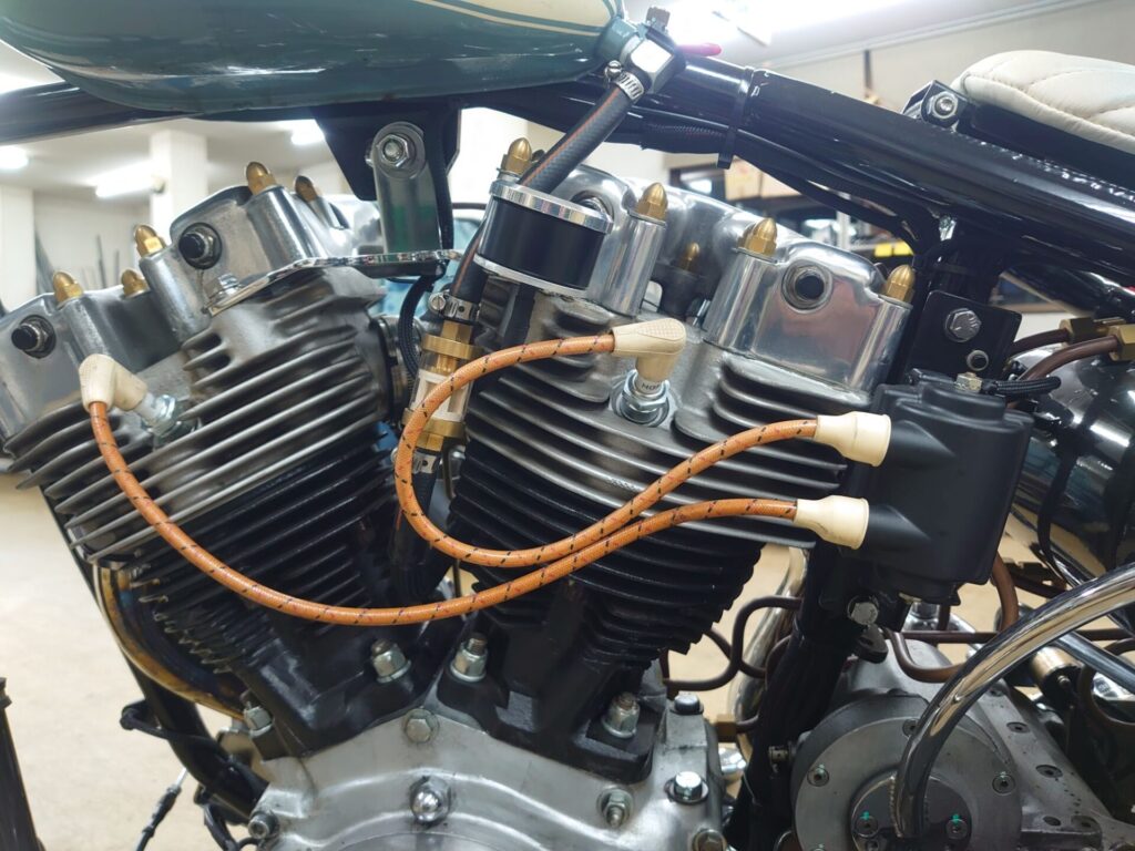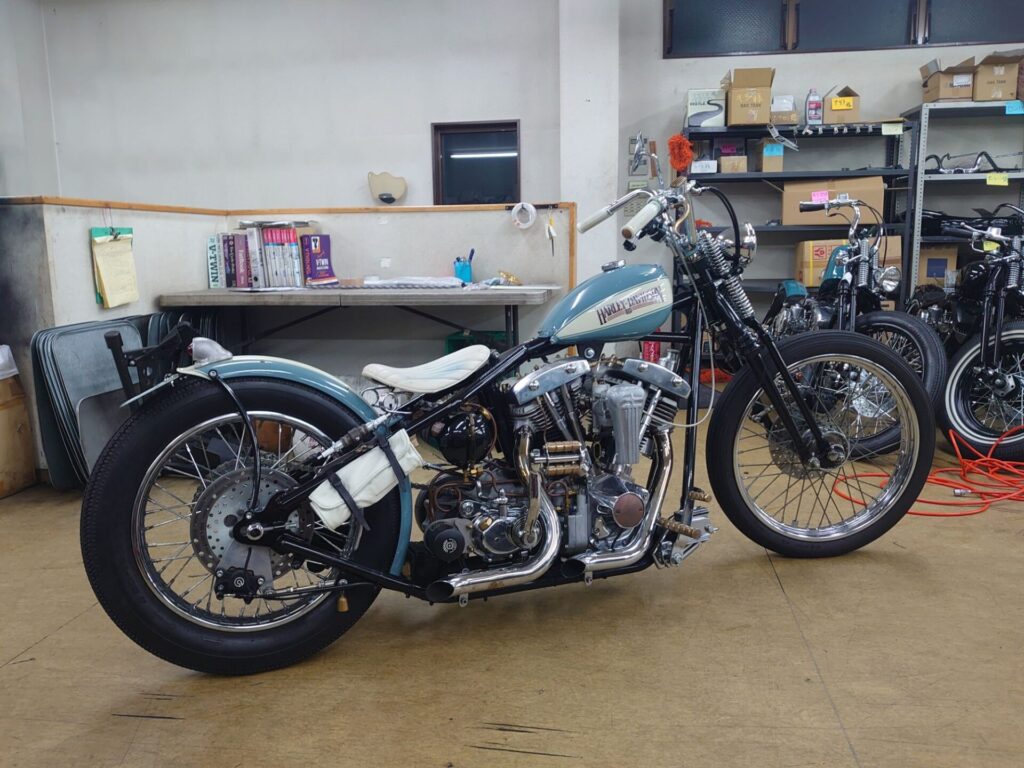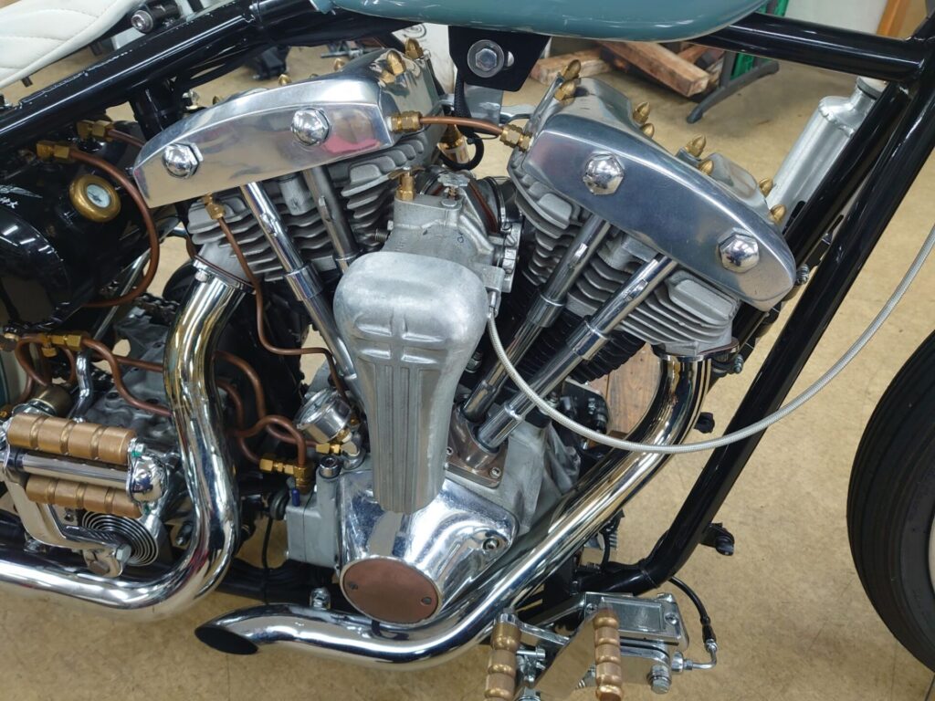 今、パンク修理がキッカケで入庫しましたショベルチョッパー様で、オーナー様自身でおこなっていらっしゃるカッコいいカスタムを見つけたので、イロイロと撮らせて頂きました♪