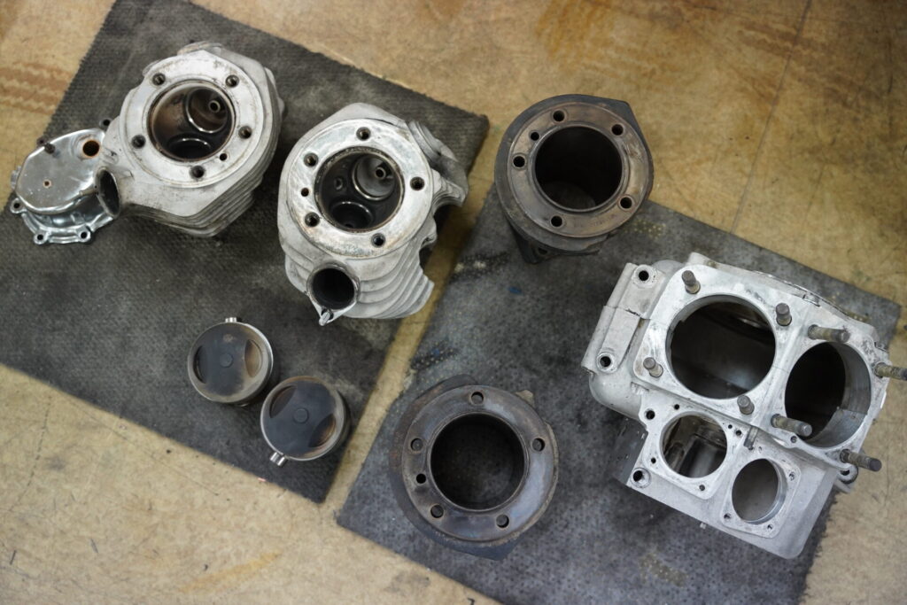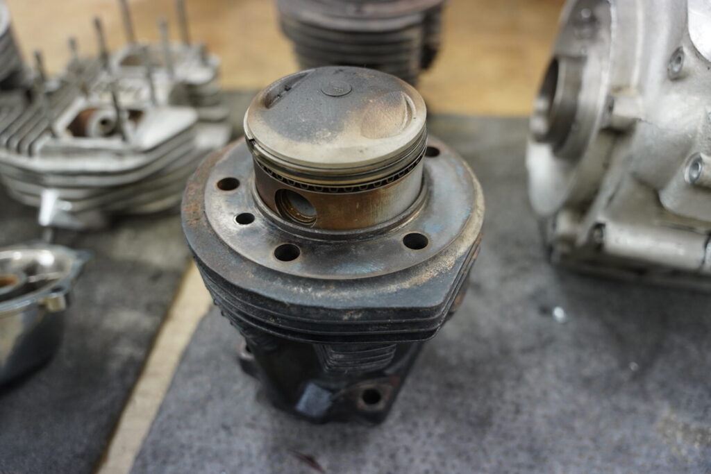 分解してみると、ピストンは珍しく 当時の純正品のまま でした。大きな傷は見られず、状態としては良好な部類です。このまま使用できる可能性もありますが、最終判断はこれからの 精密計測 にて決定いたします。