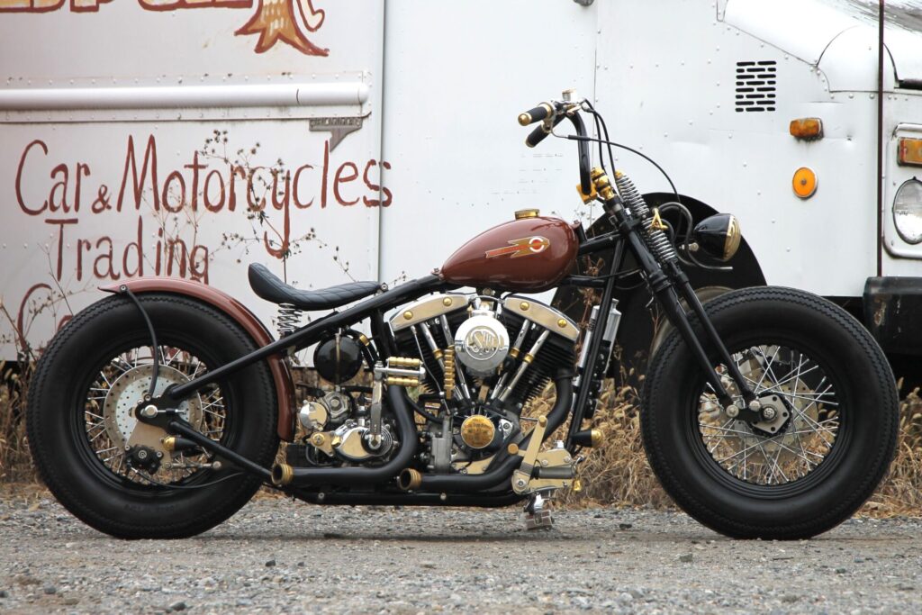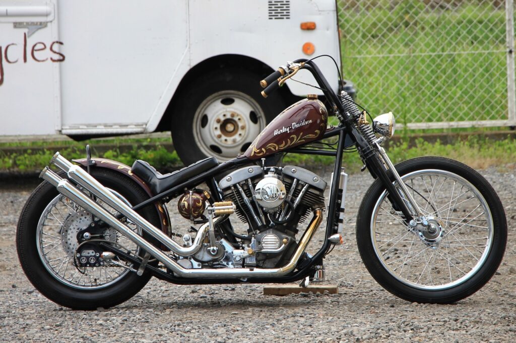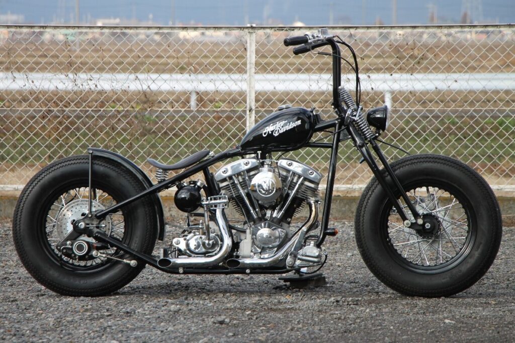 チョッパー界では定番中の定番。かなり昔からカスタム業界支えて下さっているパーツメーカーが製作しています。純正と違って鋳物部品は使用されていませんので、逆に言えばスッキリ・シンプルな仕上がりを追求するならコレという感じです。程よくカスタム感がありつつ、クセが強すぎないのが特徴です。フレームのサイズ感としては純正に近い寸法のため、スタンダードに使用することができます。ボバーstyleでもイケますが、とくに前後細身のタイヤを合わせたりなどのチョッパーstyleがお好きな方に推しです。