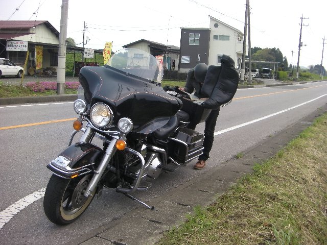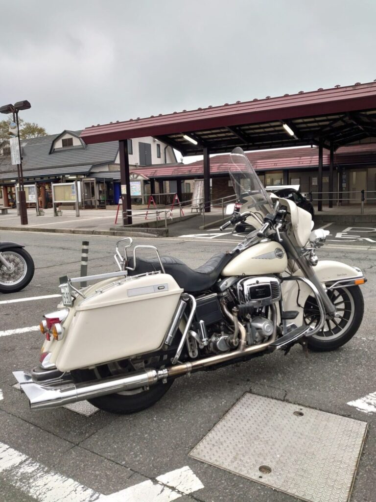 さきほどのショベルちゃんも売約となりまして、この期にオーナーチェンジです。この次に乗りましたのが買取で当店に戻って来ていたエボソフテイルのトライクがありまして、その子で3回ほどツーリングを楽しみました。そして、今はショベルヘッドの最終モデルでありますFLHに乗っています。