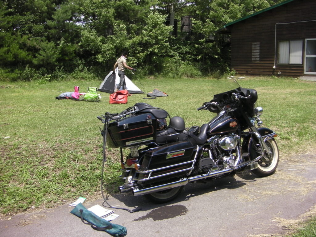 キャンプツーリングにも出かけましたし、天気なんて気にせず、雨の日もガンガン走りました。チョッパーと違って、水たまりも特に気にせず突っ込んでいけるのは精神的にもかなり楽です。フェンダーのないチョッパーは、前輪からの跳ね上げも相当ですし、リアからの巻き上げもなかなかのもの。正直、上から降ってくる雨よりも濡れてるんじゃないか?と思うこともあります(笑)。そんなチョッパーとはまったく違う世界ですが、ツアラーならではの安心感や快適さを体感できたこの時間は、今振り返ってもとても良い思い出です。普段とは違うバイクに乗ることで、改めて「用途に合わせたバイク作り」の大切さを感じさせられました。