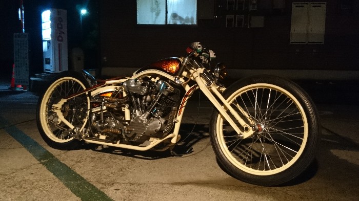 正直なところ、かなり尖ったバイクだったので、買って下さる方に出会う確率はかなり少ないと思っていたので、この辺から自分のバイクが急に無くなりました。そんな頃に、業務にてアメリカから買ってきたショベルでおもしろい子がいまして、その子に乗りました。