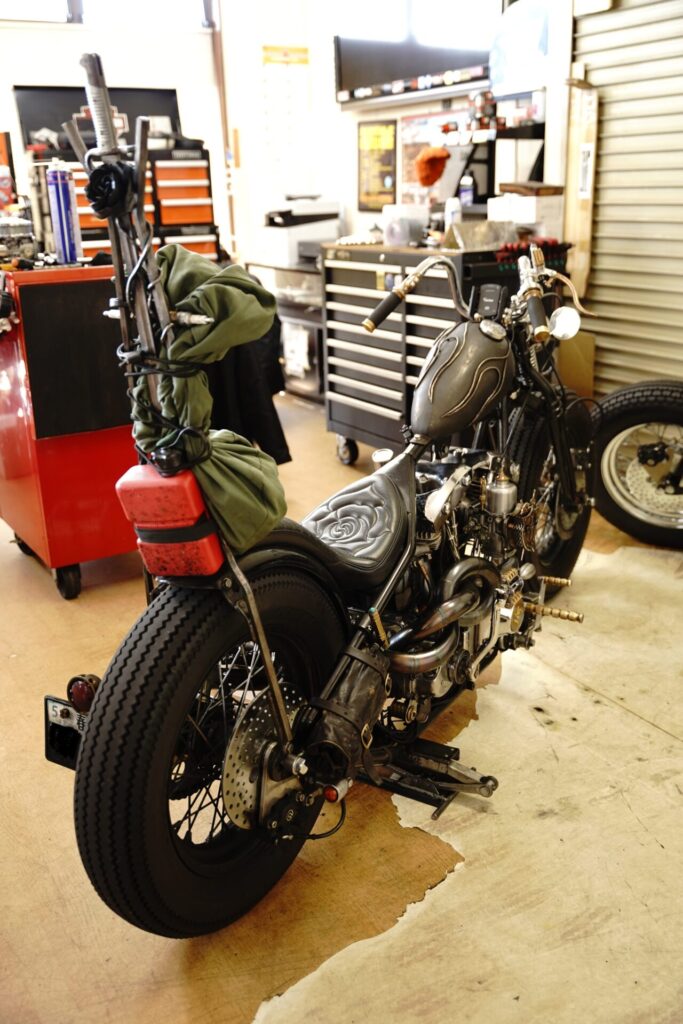 兵庫県からお越しくださいましたショベルヘッド様。こちらの車両は、今からちょうど3年前に当店にて納車させていただいた一台で、今回は車検のためお預かりとなりました。こうして定期的に戻ってきてくれる車両を見れると私も嬉しいです。