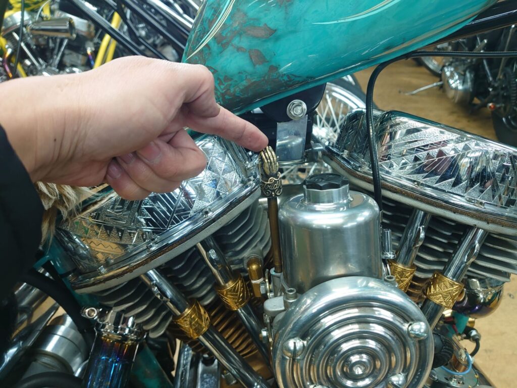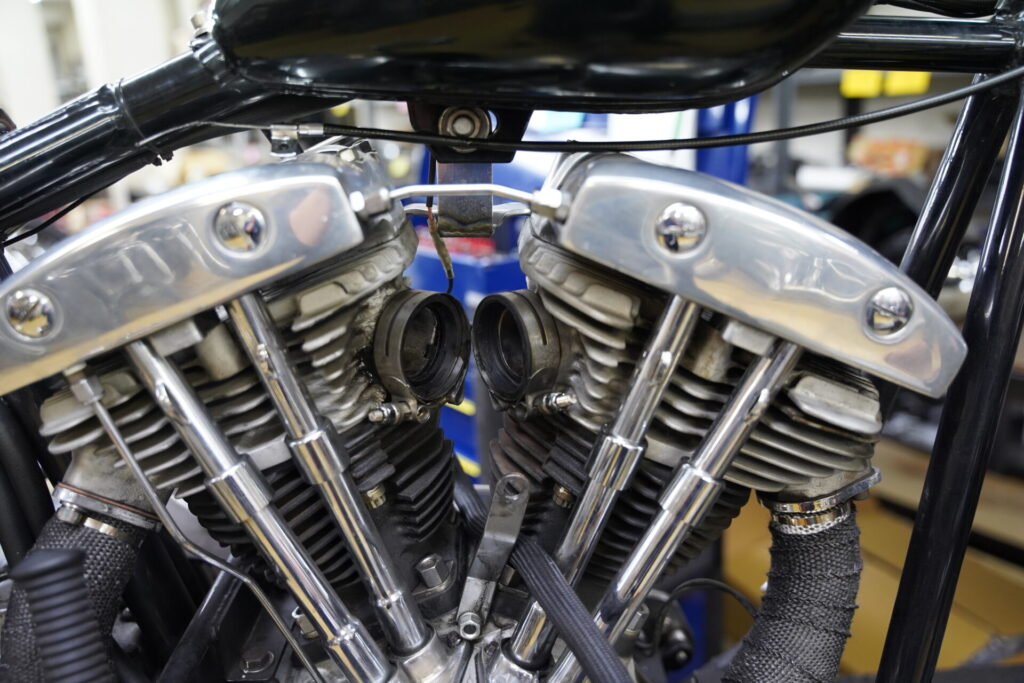 では、先日兵庫県よりお預かりいたしましたショベルチョッパー様のメンテナンスさせて頂いておりますので一部ご紹介させて頂きます!