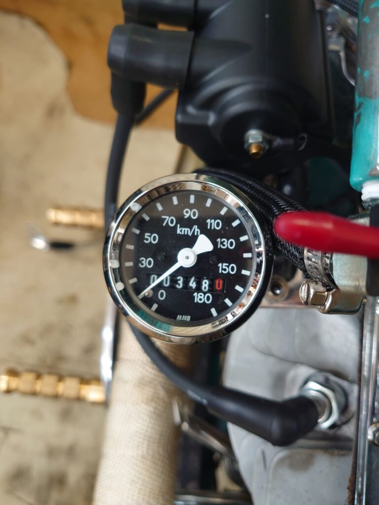 さらに、タンクのデザインに呼応するように、フェンダーにもバランスよくラインを配置し、全体として統一感のある印象を実現しています。これらのペイントデザインはすべて、オーナー様よりお預かりしたイラストをもとに、熟練のGクラシック赤坂氏の手によって仕上げられたものです。