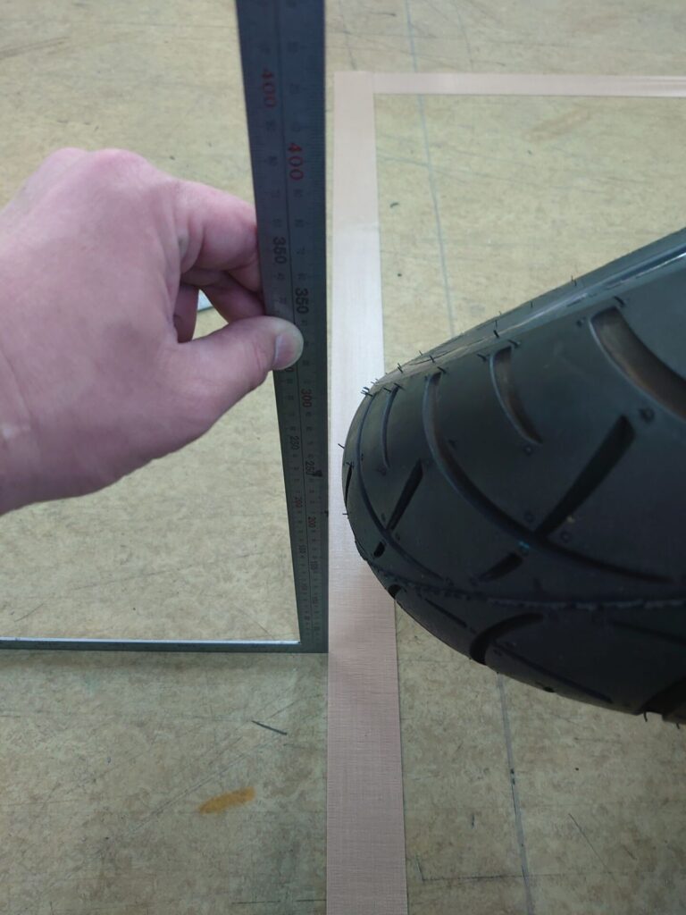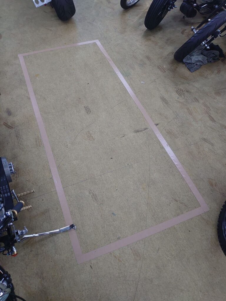 さてさて、テストランは一旦休憩で、2階の床にガムテープで長方形を作りました(^^)