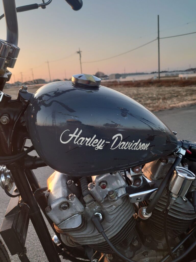 純正の良さを残しつつ、ちょっとだけ遊び心を足したショベルヘッド。こういう「やりすぎないカスタム」も大好きです!