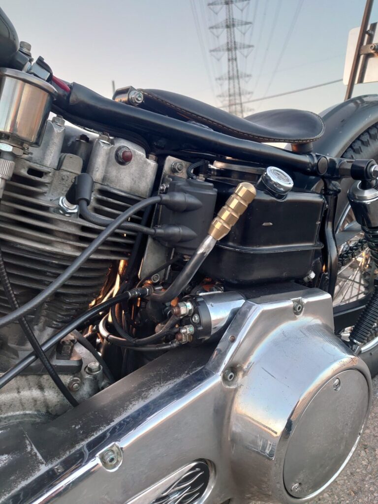 プライマリーは純正のままですので、セルスターターも装備。もちろんキックスタートも健在で、その日の気分で「今日はセル」「今日はキック」と、両方楽しめるのもこの車両の魅力ですね。