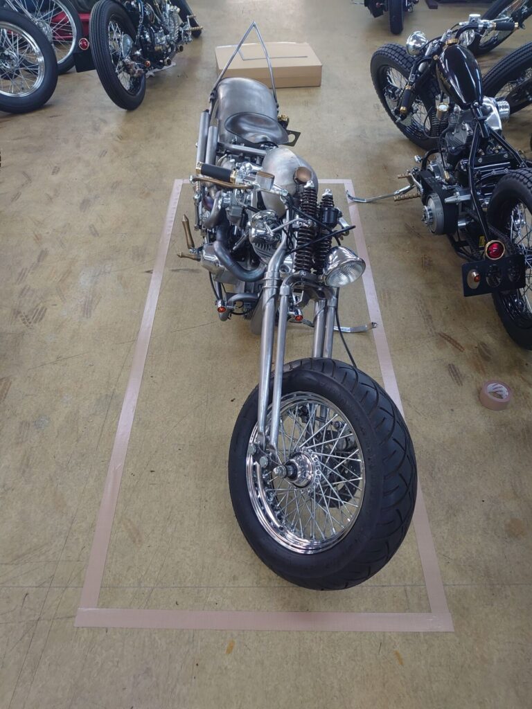 15時前には群馬に戻ってきまして、まもなく納車前のショベル様のテストランを致しました。今日は結構暖かくとても快適に乗れました。リジットフレームばかりの当店ですが、久々にサス付きのスイングアーム式フレームでしたので、いつも警戒する段差も気にせず乗り越えました♪