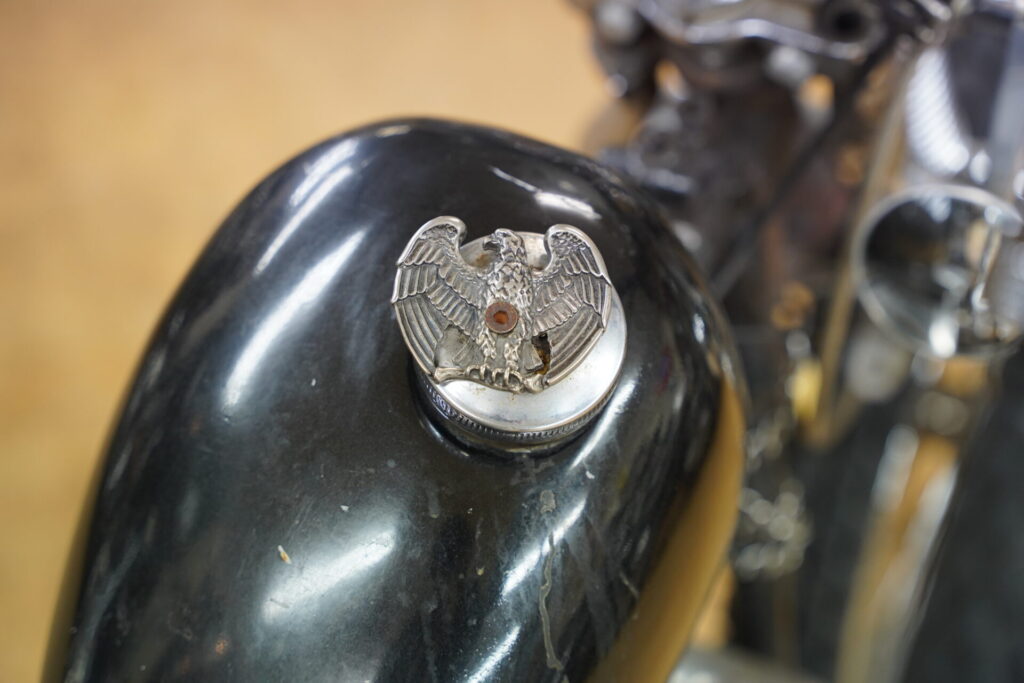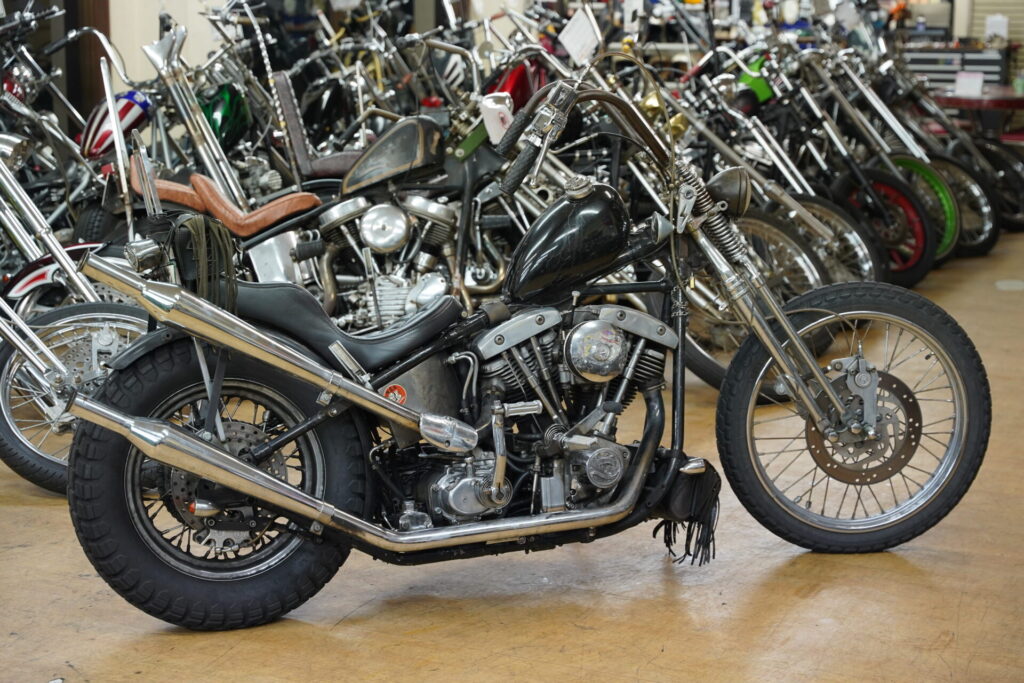 青いロングチョッパーのショベルヘッド様は、25年以上という長い年月、大切に所有されていたオーナー様から買取させていただくことになりました。お話をしていると、そのバイクと一緒に過ごしてきた時間や思い出が次々と出てきて、胸が熱くなるようなストーリーばかり。こうして長く愛されてきた車両を次のオーナー様へとつなぐ役割を任せていただけるのは、本当にありがたいことだなと改めて感じました。
