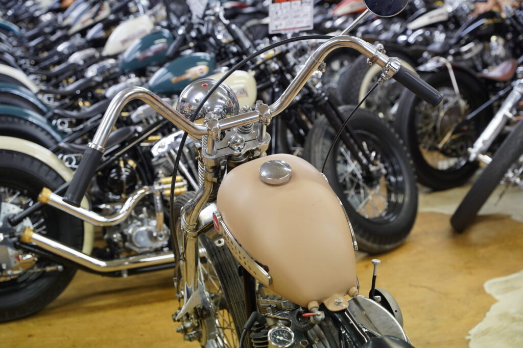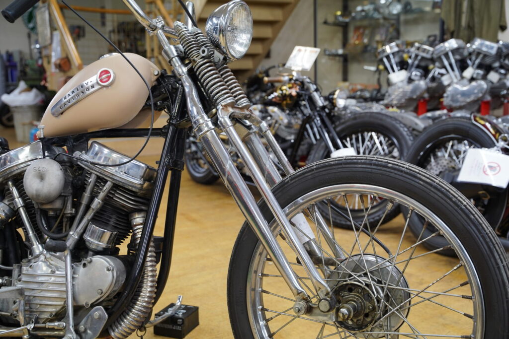 本日ご紹介したい車両は、少し前に一般のお客様より買い取りさせていただいたパンヘッドのチョッパーです。一目見た瞬間に、「イイ雰囲気のバイクだな〜」と素直に思わせてくれる、そんな様子をまとった一台でして、きっと多くの方に共感していただけるのではないかと思っています。派手さで目を引くタイプではありませんが、前オーナー様のこだわりと、このバイクと共に過ごしてきた時間の積み重ねが感じられる、味わい深いカスタムバイクです。