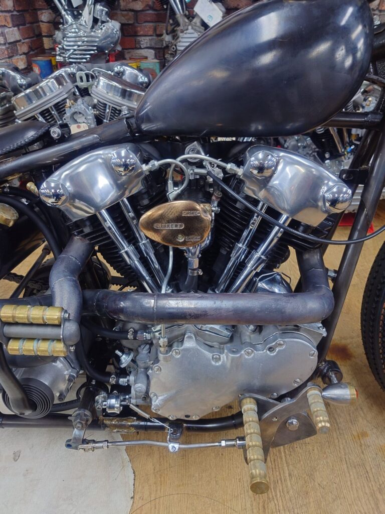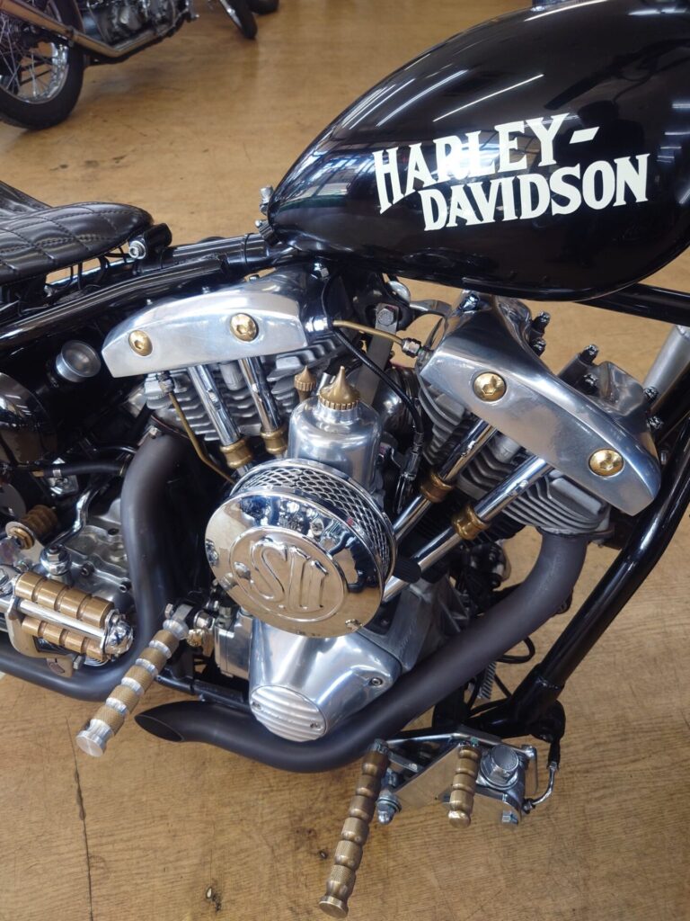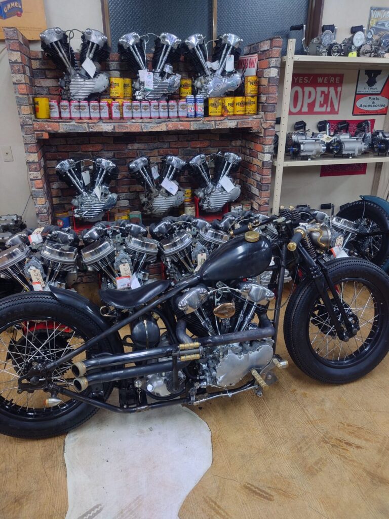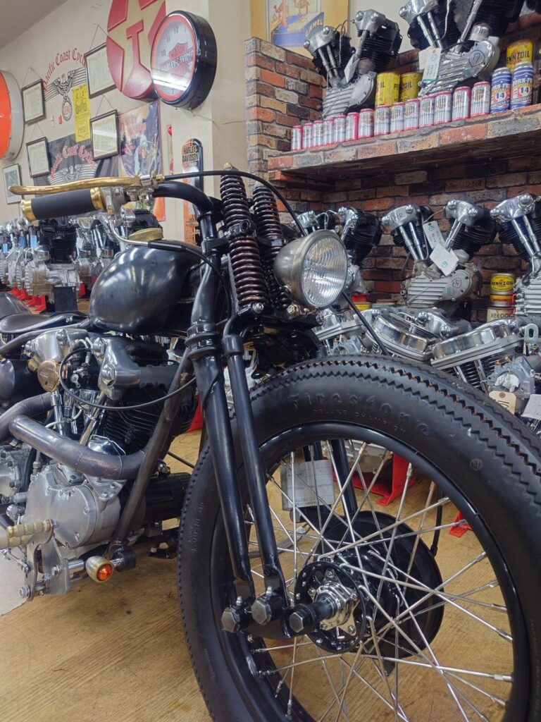 見た目はしっかりと時代を感じさせる佇まい、中身は現代の技術と新品部品でしっかりと組み上げられた一台。そんなギャップも、このナックルボバーの大きな魅力のひとつだと思います。完成までもう少し。仕上がった姿を、ぜひ楽しみにしていてください。