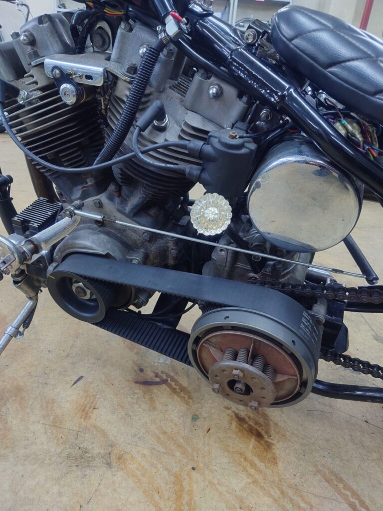 昨年の冬に納車させていただいたばかりのパンチョッパー様。今回は、納車後の初回点検ということでお預かりさせていただいておりました。エンジンはオーバーホールしたばかりということもあり、慣らしの工程はとても大切なポイントになります。