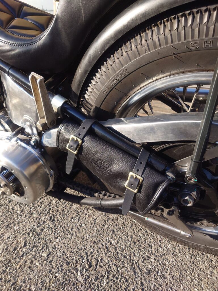 さらに、このツールロールはシーシーバーに背負わせることもできますので、シーシーバーという存在は、見た目だけでなく、実用性の面でも非常に利便性の高いカスタムパーツだと感じています。実はキックスタートもしやすくなるポイントがありますので、そのあたりもぜひ参考にしてみてください。