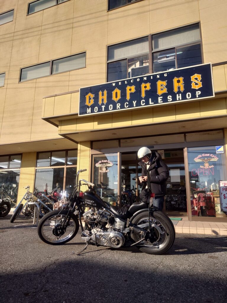 そして本日は、天気予報どおり日中はなかなか暖かく、ジャケットなしでも5分や10分ほどでしたら問題なく過ごせるような、そんな心地よい一日となりました。そんな最高のコンディションの中、当店から1台のチョッパーが元気よく走り出しましたので、ちょっとご紹介させていただきます。