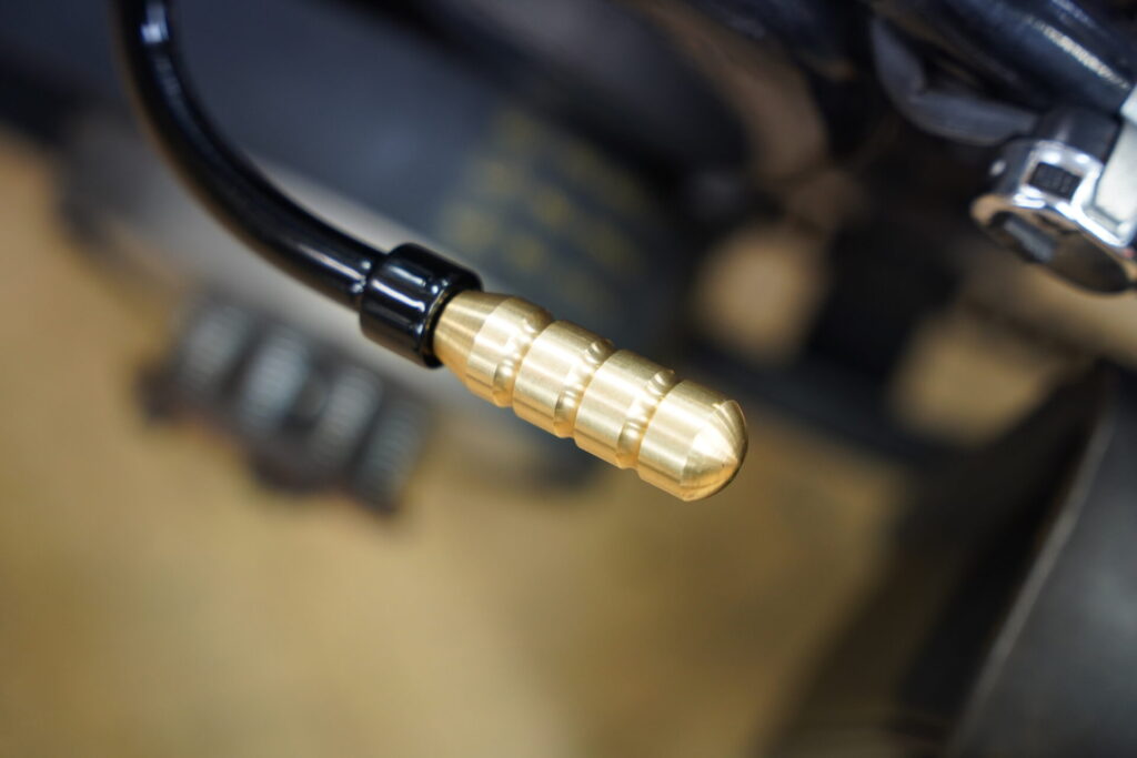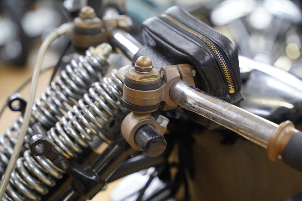 こちらの車両は、なるべく元々の状態で使われていた部品を活かすことを前提に、フットクラッチ仕様へと改造を行い、あわせてジョッキーシフトをワンオフにて製作いたしました。