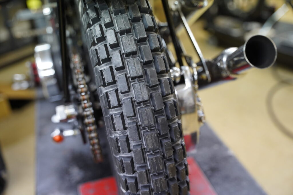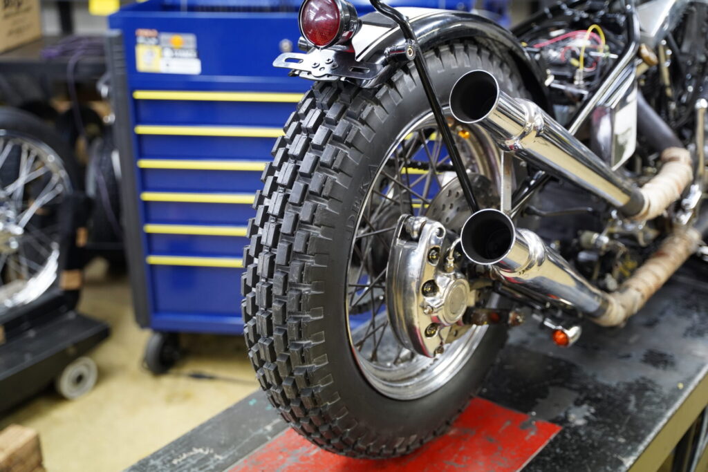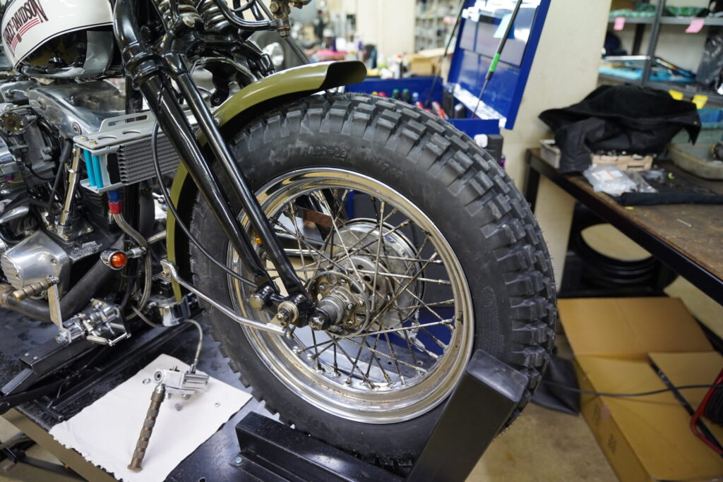 そんなDEKAタイヤを履かせましたショベルチョッパー様は、車検にてお預かりしておりますが、整備もまもなく完了しますので、近く車検を受ける予定です。これまでのタイヤが長持ちしてくださっていましたが、いよいよこの機に前後ともに新品交換です。タイヤが新しくなりますと、結構印象が変わります!