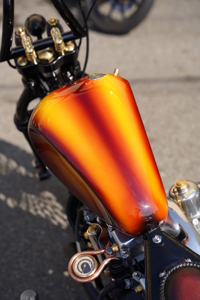 さて、本日ご紹介するもう1台の車両のお話です。こちらは4月開催のジョイントカスタムショーに展示を予定しており、その展示当日に納車予定となっているショベルチョッパー様。