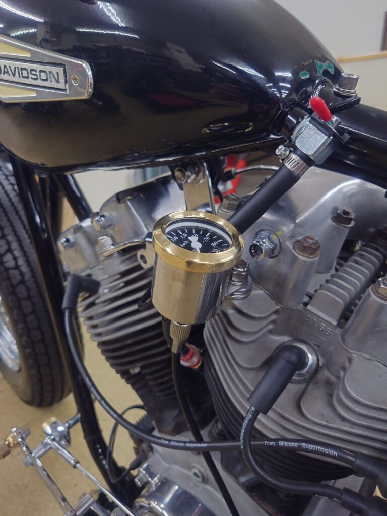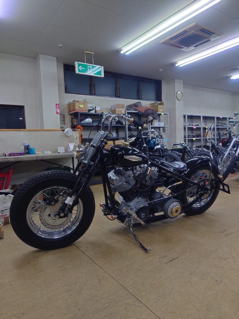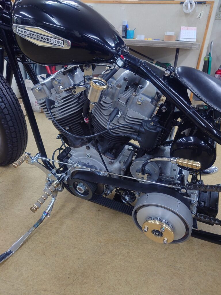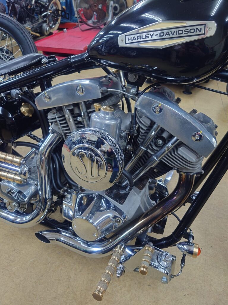 エンジンは1978年式のショベルヘッドです。キャブレターは今では入手が困難なSUを装着しています。