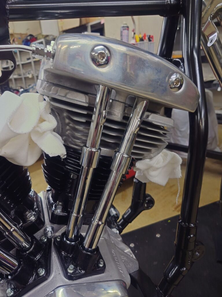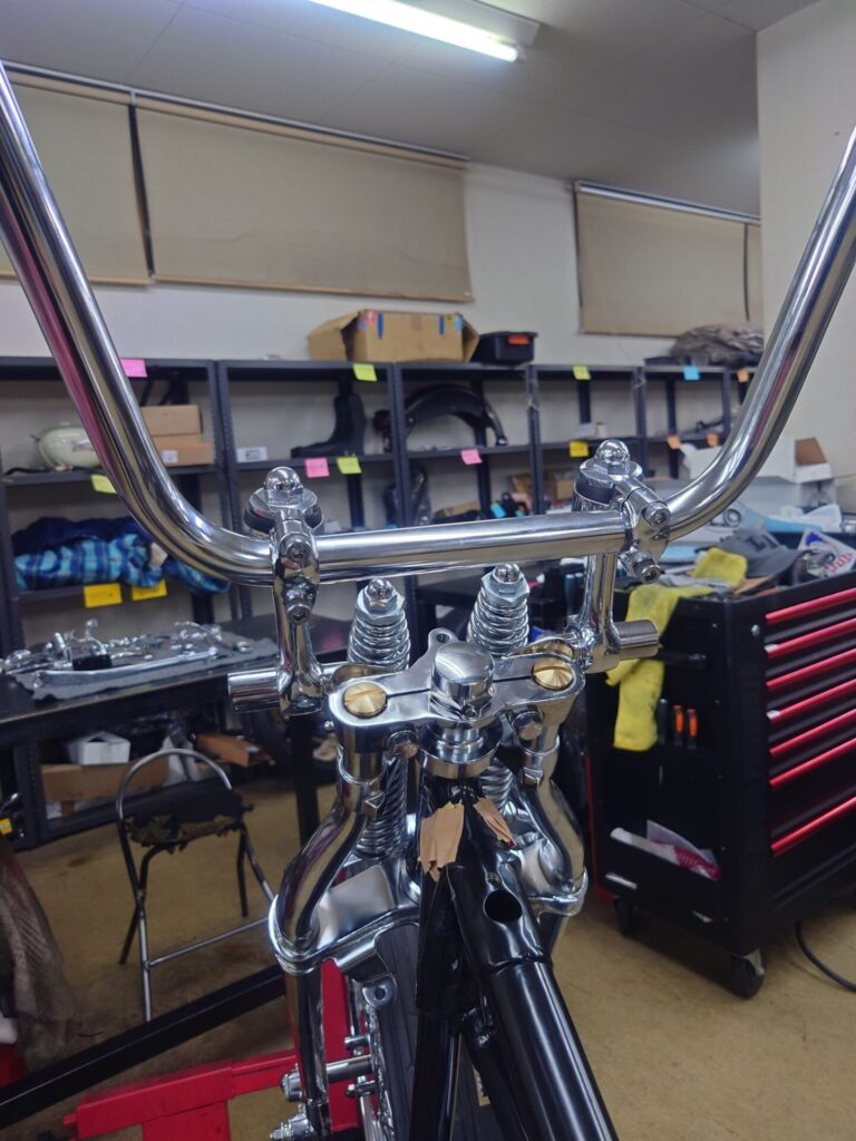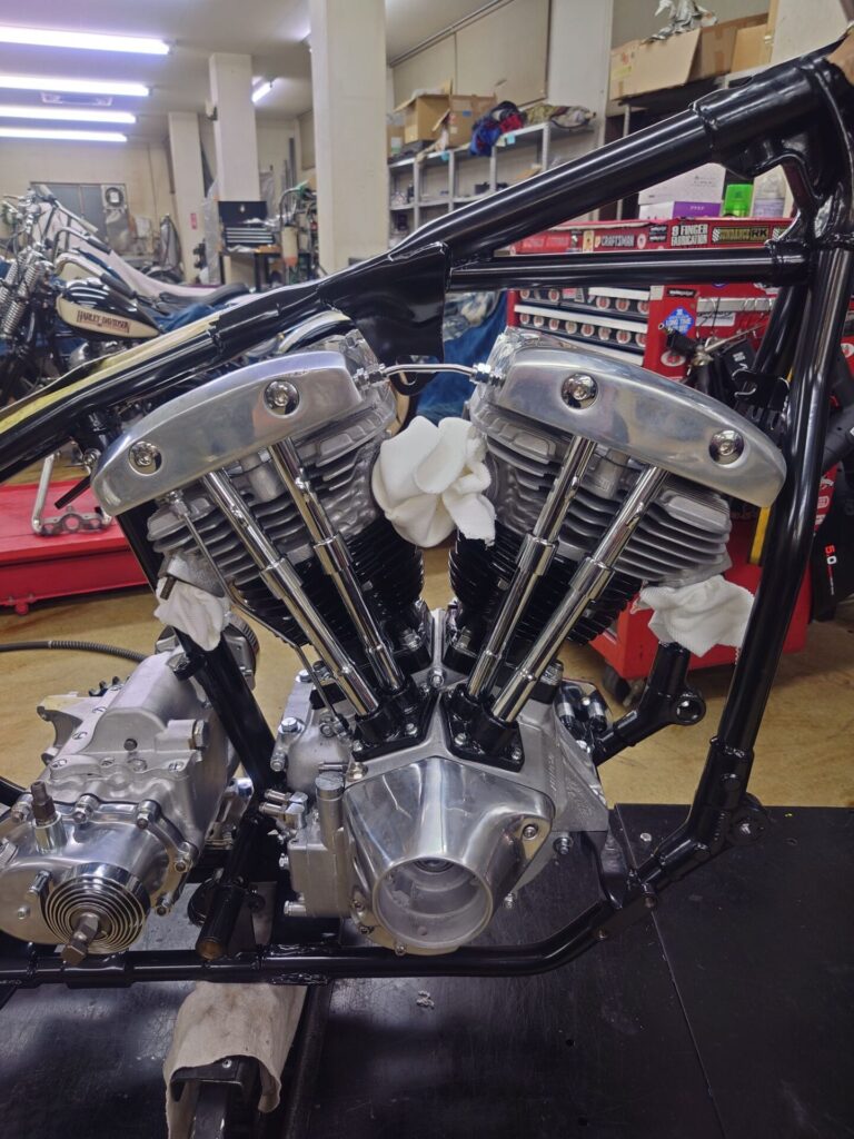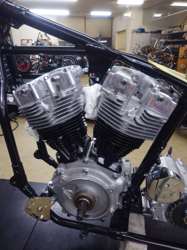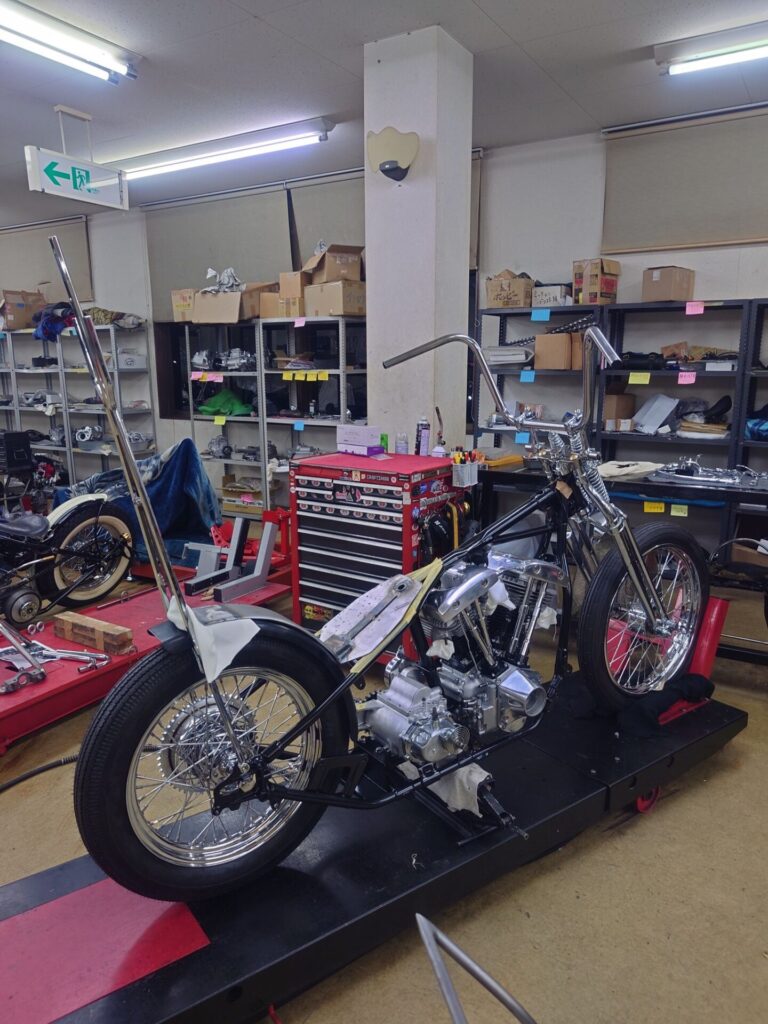 さて、本日ご紹介させていただくのは、塗装やメッキ仕上げが整い、いよいよ“バイクらしい姿”になってきましたショベルチョッパー様です。