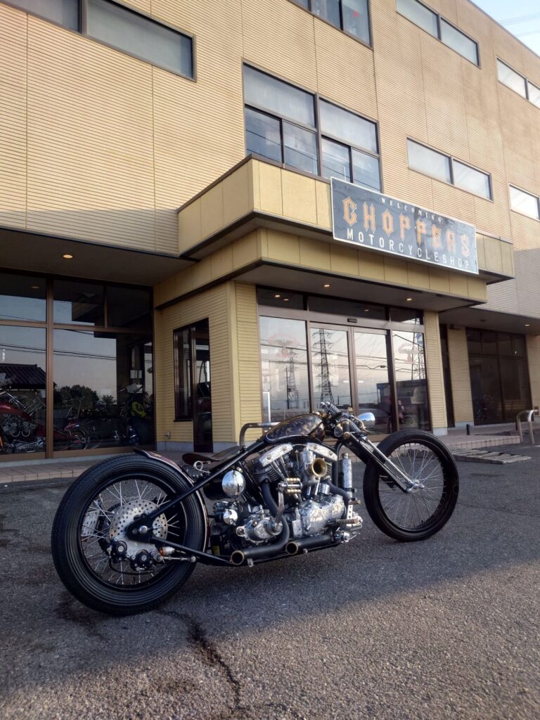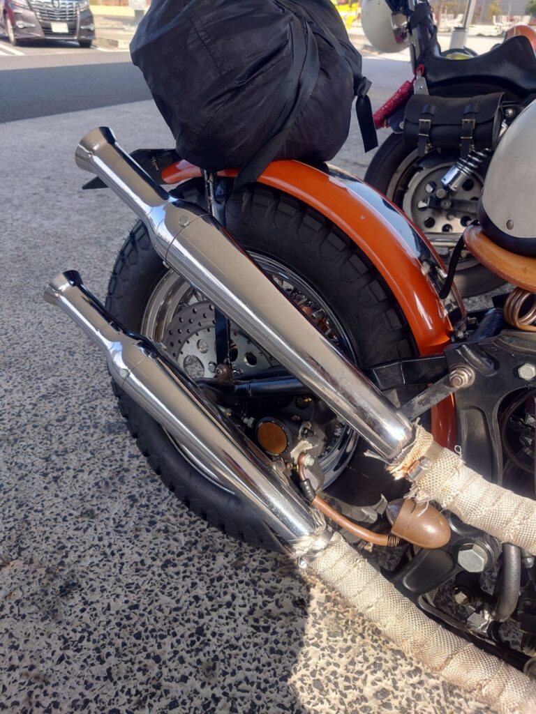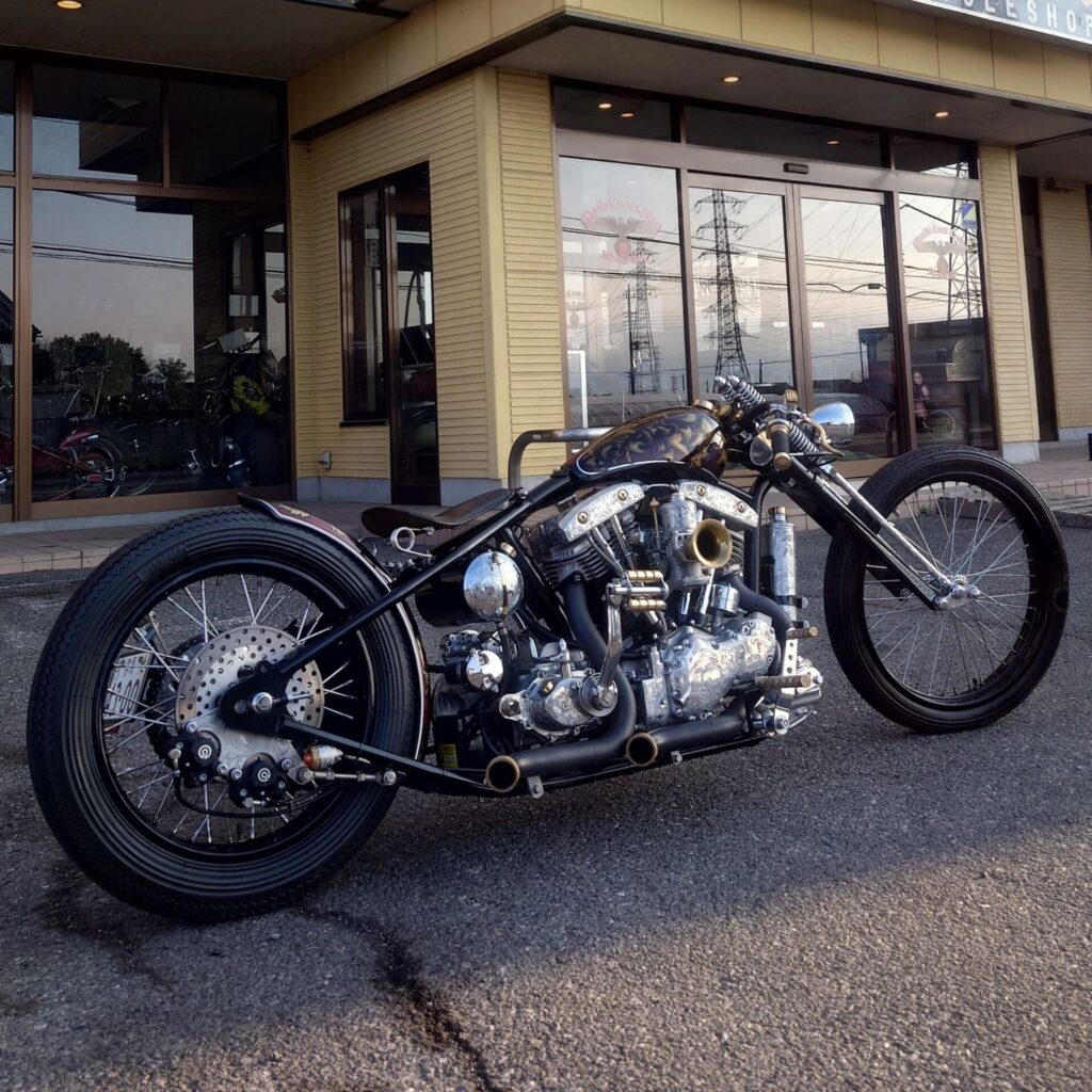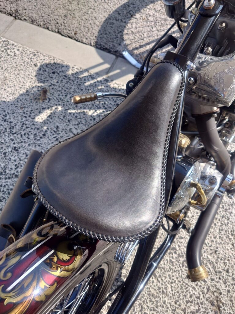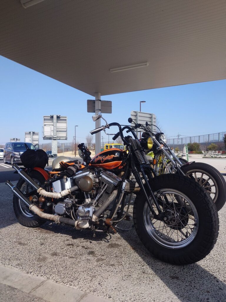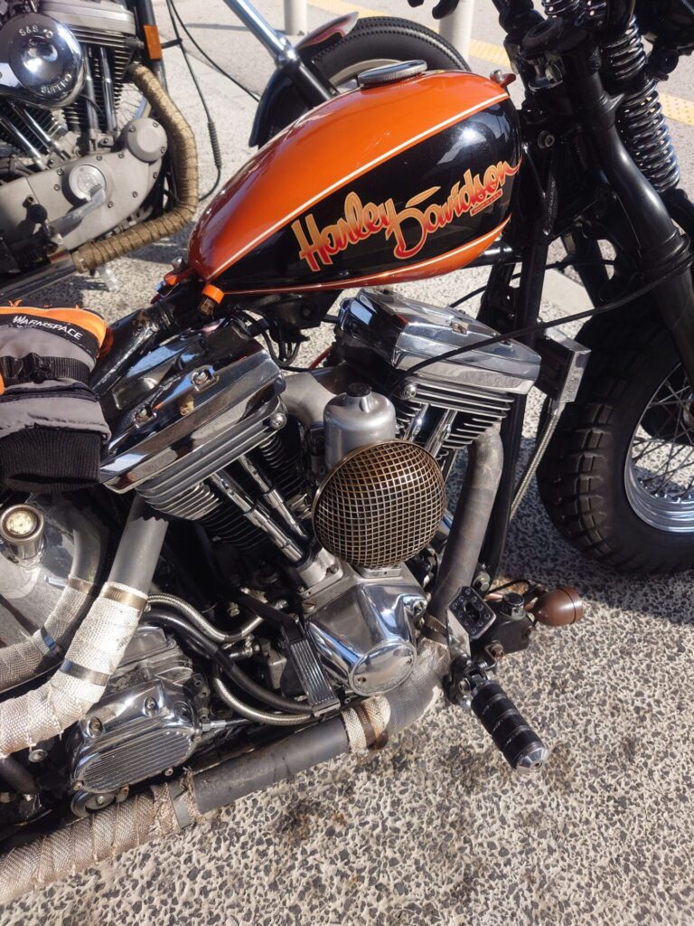 今回、私オオガキの相棒はアーリーショベルを搭載したグースネックのボバーstyle。イベントなどでも展示してきた、当店の“推し”カスタムが詰まった一台です。見た目通り、決して乗りやすいバイクではありませんが、このハードな乗り味がどうしても好きなんです。まさに“乗ってる感”を全身で味わえる一台です。