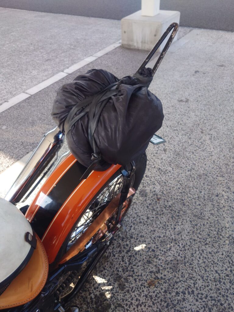 まず失敗したなと感じたのが、大きなフード付きのジャケット。これが想像以上に厄介で、後方確認がとにかくしづらい。顔を少し動かした程度では全く見えず、ハンドルから片手を離し、体ごと大きくひねってようやく確認できるレベル。車線変更のたびに神経を使いました。