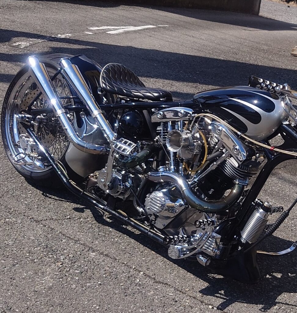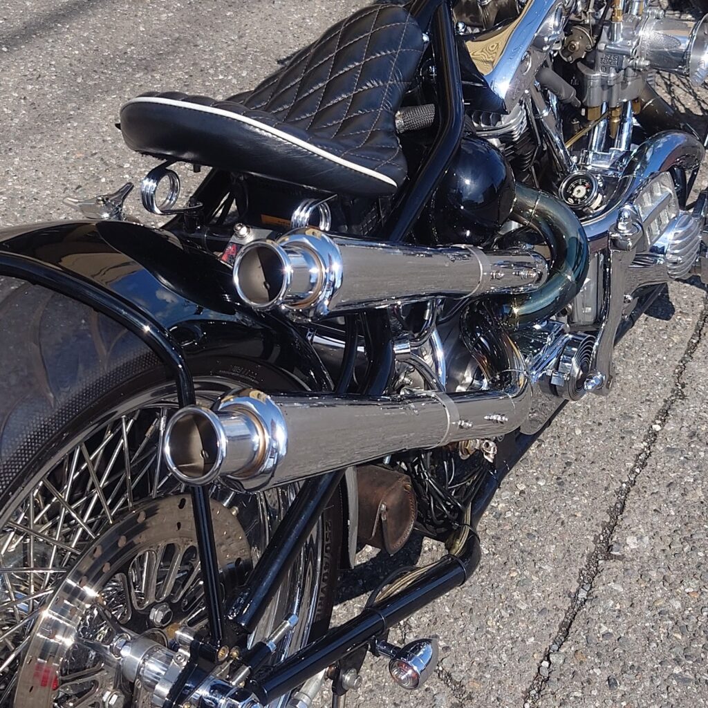 さて、そんな春のスタートを感じる2日間でお会いしたお客様たちのチョッパーを、ほんの一部ではありますが少しだけご紹介させていただきます。どれもそれぞれに個性があって見応えのある車両ばかりでございますので、ぜひ最後までお付き合いいただければと思います。