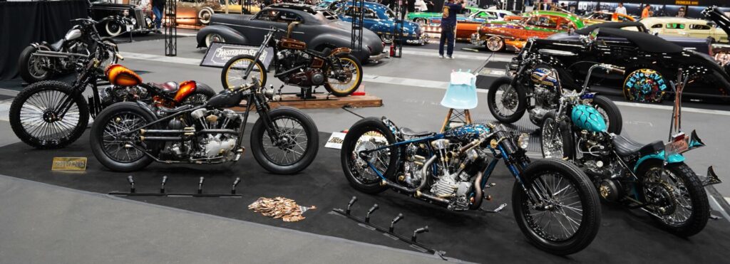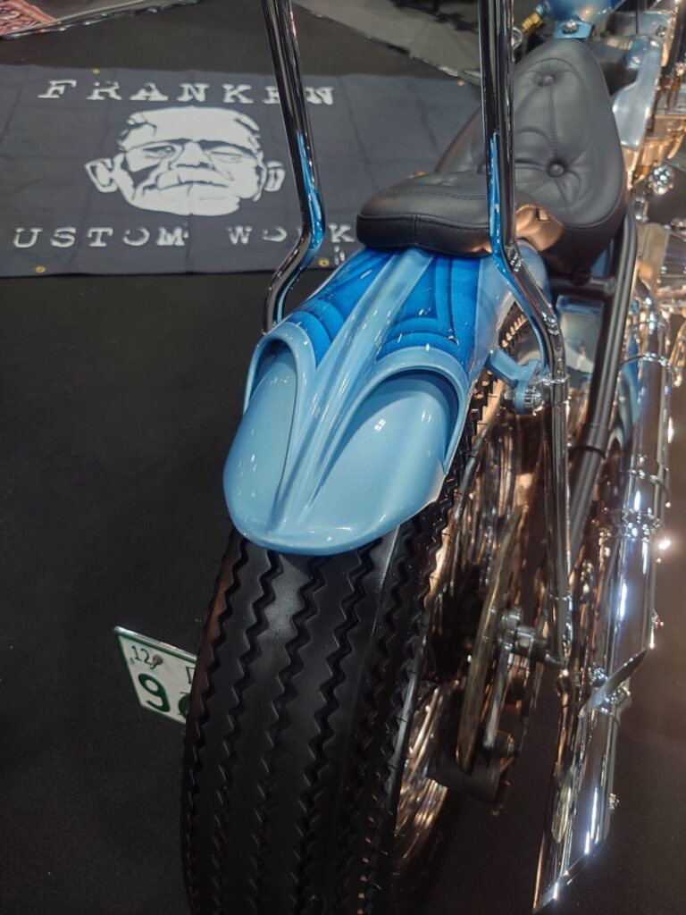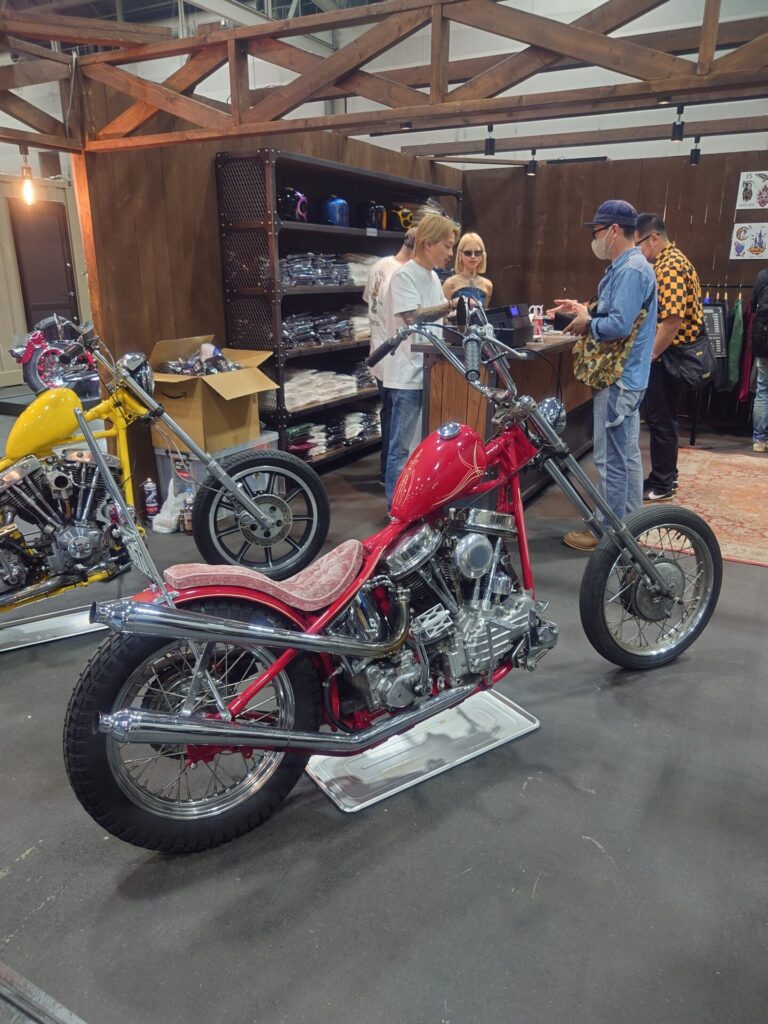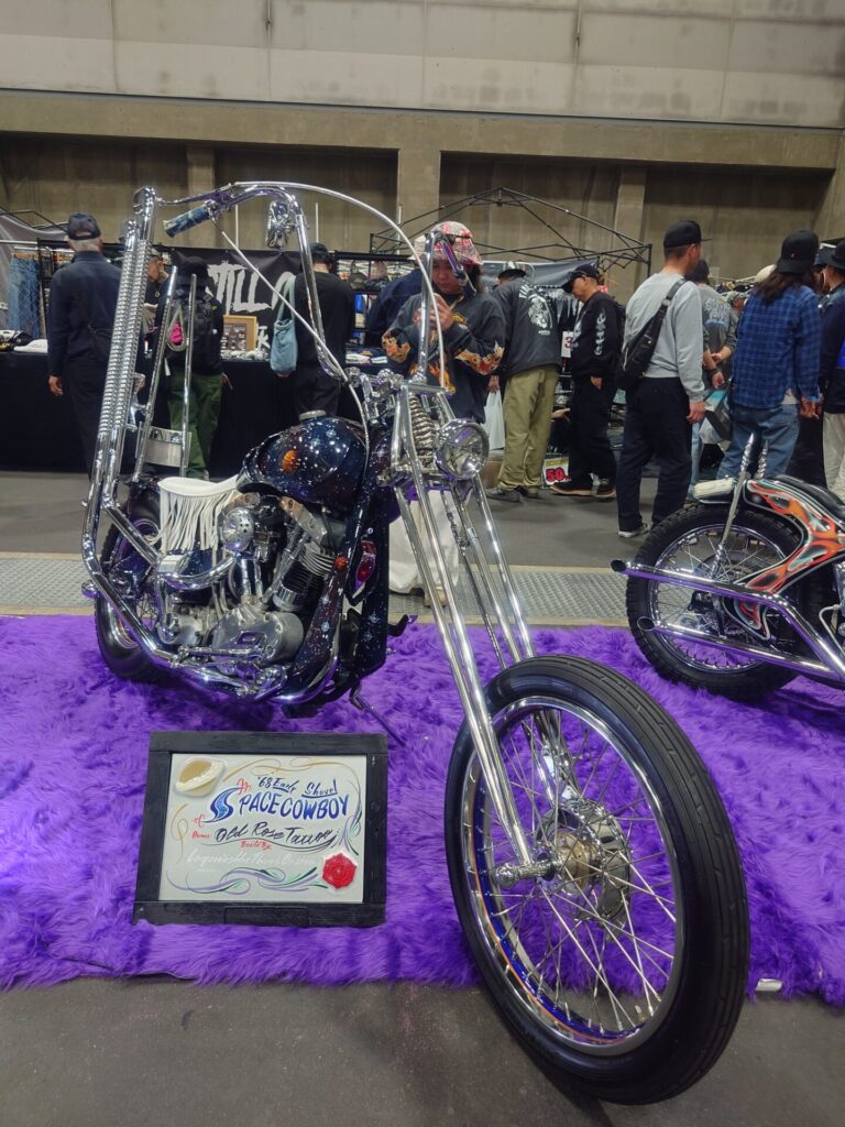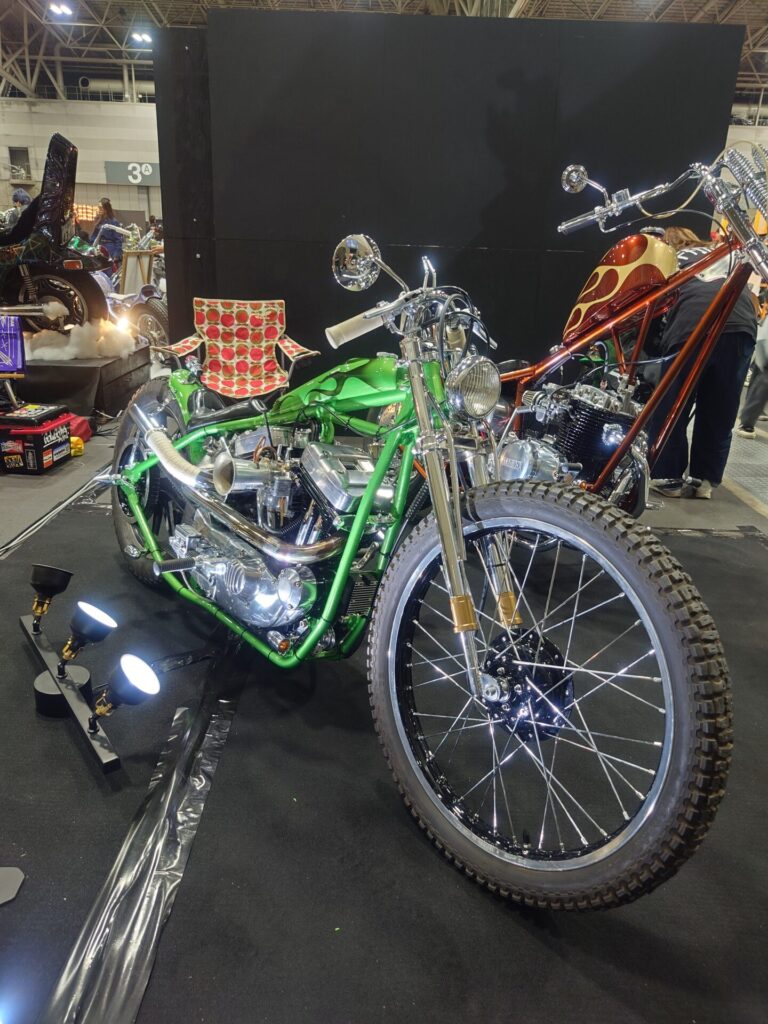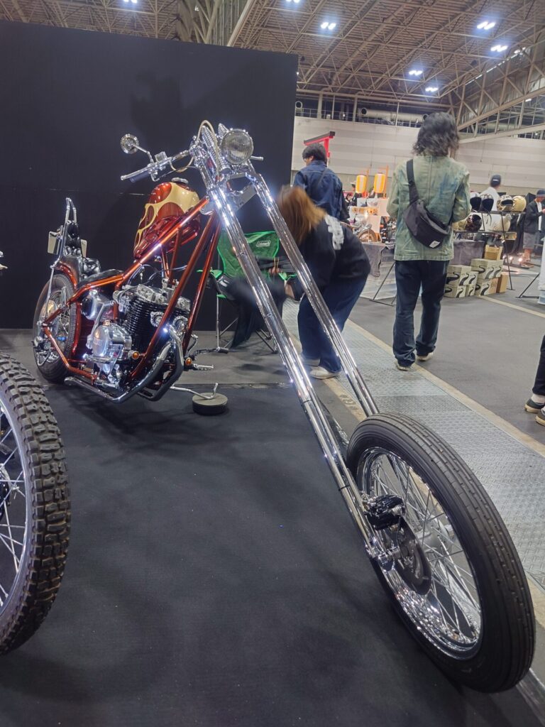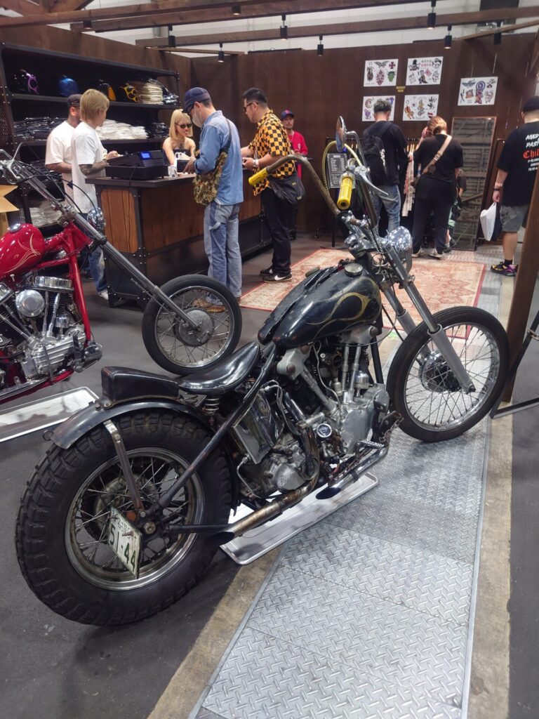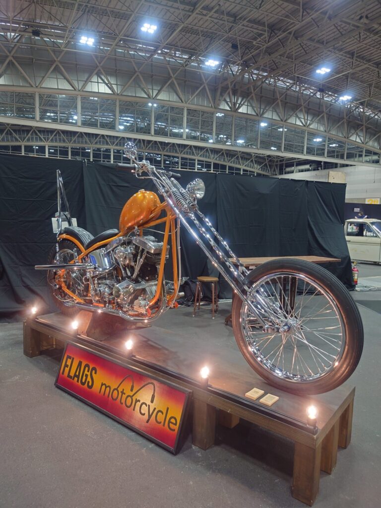 ということで、このブログではその中から一部ではありますが、印象に残ったチョッパーたちをご紹介させていただきたいと思います。まずは、仲良しなSHOPの製作車両からご紹介させてください。
