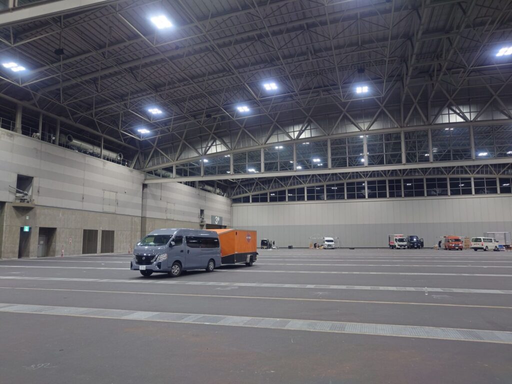 そして迎えた本番当日。イベント終了後の会場の外は、各出店業者様が一斉に片付けを始めており、車両や搬出車両が行き交うなかなか独特な雰囲気となっておりました。そんな状況の中での初走行というのは、想像以上のプレッシャーがあったのではないかと思います。しかしながら、そのプレッシャーを感じさせることなく、非常にスムーズな走り出しでスタートされていった姿がとても印象的でした。これまでの練習の成果がしっかりと出ていた瞬間でもあり、見送る側としてもとても安心できる走り出しだったと思います。