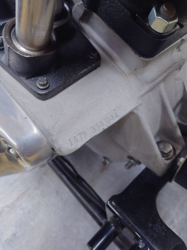 まずエンジンですが、刻印から判断すると1979年式。しかもこの刻印がなかなか珍しいタイプで、一般的な“末尾H9”とは異なる仕様。ショベルヘッドを多く扱う当店でも、10年で1〜2台出会うかどうかというレアな個体です。