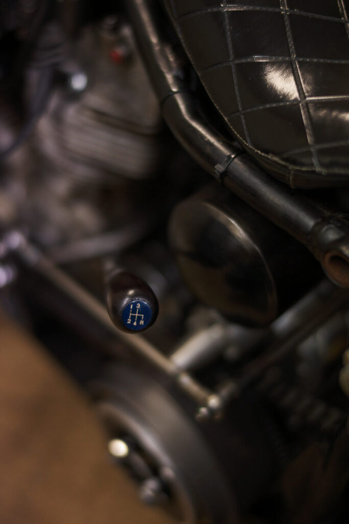 もともとはフォワードコントロール仕様でしたが、今回はミッドポジションに変更。さらにジョッキーシフトを採用するなど、操作系も大きくカスタムしています。操作感や見た目においても、レーシーかつクラシカルな印象を両立しています。
