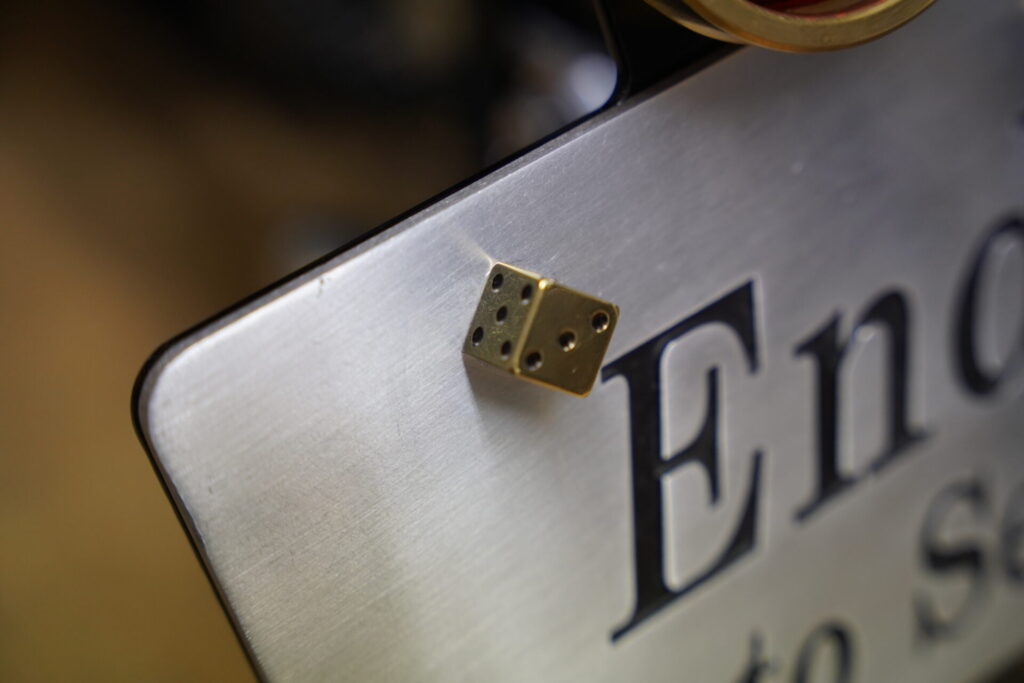 気軽にカスタムをしたい方にオススメな、ナンバープレートを固定するためのボルトです。すべてが真鍮製でダイス型に削り出しにて製作されております。カスタムバイクでも純正バイクでも、インパクトのある真鍮ダイスボルトで飾ってはいかがでしょうか。ナンバーの裏側が見えるカスタムをしている方には、裏側からも真鍮のネジナットが見えるところもオススメです。