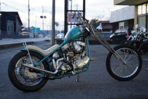 製作期間約3年を費やし、各パーツ一点ずつオーナー様とのお打ち合わせを重ねてついに完成しました!心臓部のエンジンはエボリューションStyleの外観を持ちながら、内部はツインカムという構成のハイテクでフルポリッシュのピッカピカ2000ccエンジンです。さらにミクニ製HSRキャブレターのセットによってBIGトルク&HIパワーのコンビで、日本の公道では簡単には使い切れないほどの力強さを体感できます。通常のフレームsizeでは収まらないエンジンのおかげで特別設計でオーナーのための製作がスタートし、ハンドル&シートのポジションもロー&ロングのバランスを崩さずキレイなシルエットでお作り致しました。細部にわたってのこだわりが深く、お伝えしきれないほどのワンオフパーツがテンコ盛りです。車体全体をまとったチタニウムペイントは艶の無いマットな雰囲気で、見た目通りの高級車感を表しカッコ良く仕上がっていると感じます。その反対に艶のある真鍮のゴールド色が艶の無いペイントに良く映えております。ハズしとしてバックスキンの赤のシートとバックをチョイスする点はかなりのハイセンスです!色遣いを含め、前から後ろまで見どころ満載のスペシャルグースが完成となりました(^^)/